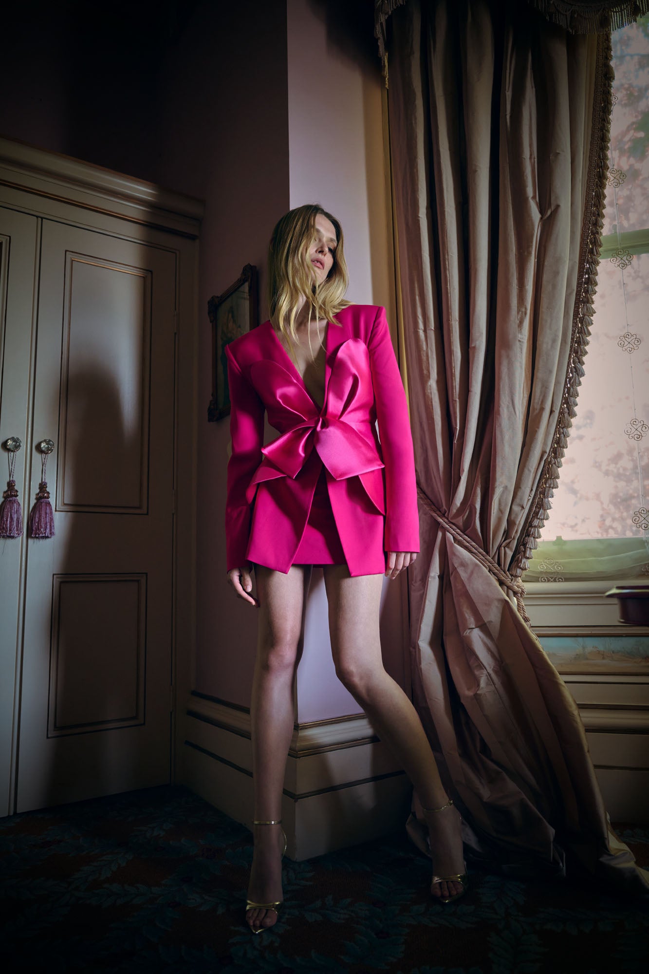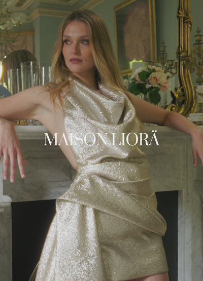 Set within a grand French mansion, Maison Liorä unfolds through historic salons and quiet corridors. Sculpted silhouettes, fluid drape, and precise construction move in dialogue with timeworn interiors, where light, shadow, and proportion shape the mood.